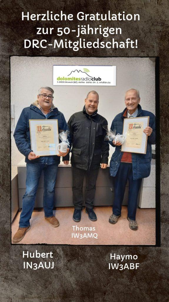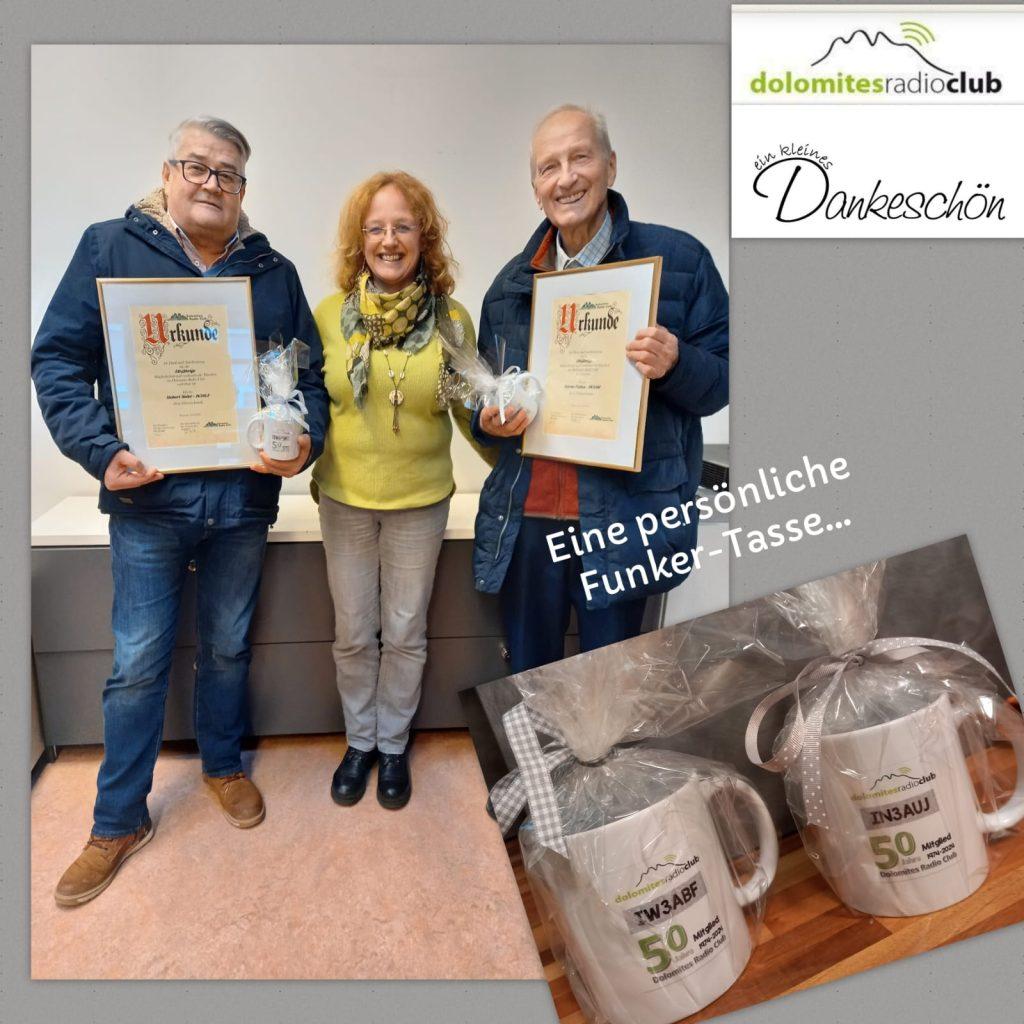 Am Donnerstag, 13. Februar 2025 wurden im Clublokal Bruneck von Thomas IW3AMQ und Rita IN3IJZ zwei Mitglieder des Dolomites Radio Club mit 50-jähriger Mitgliedschaft geehrt.