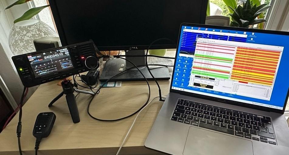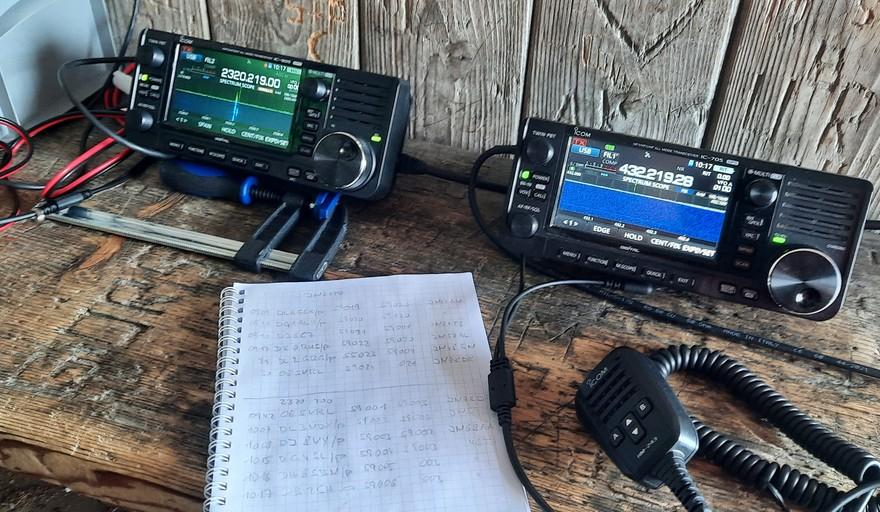 Abb. 3: Unser Contestarbeitsplatz mit dem IC-905 und einem IC-705 für einen 9 cm-Transverter.