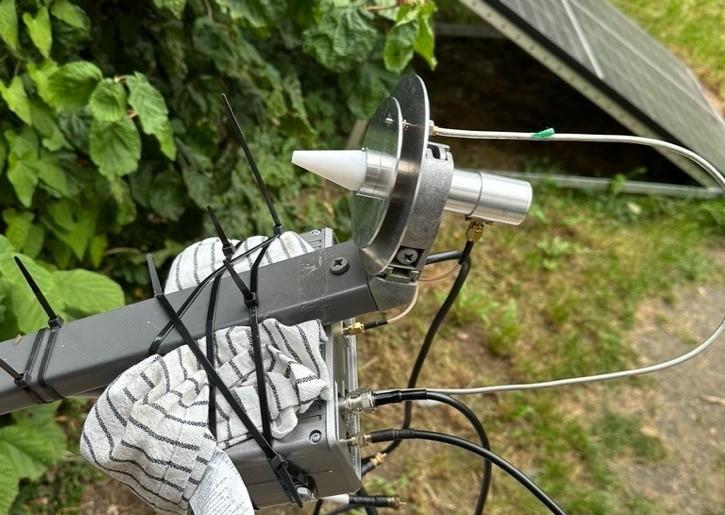 Später ging es auf 13 cm und parallel auf 6 cm weiter. Auf 13 cm kam eine bewährte 25-Element Yagi zum Einsatz. Hier war das Angebot an Stationen geringer, aber es kamen auch wieder schöne QSOs ins Log. Auf 6 cm nutzten wir eine kommerzielle Panel-Antenne. Mangels aktiver Partnerstationen konnten nur wenige QSOs abgewickelt werden, die jedoch problemlos gelangen.