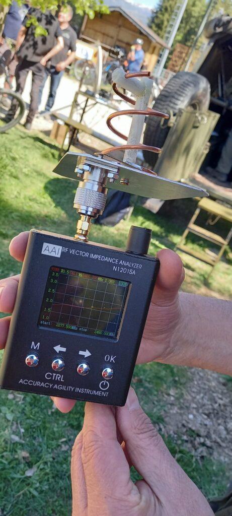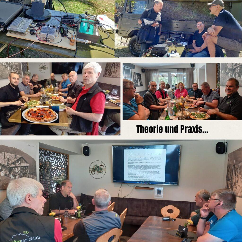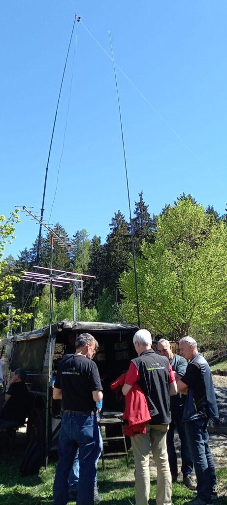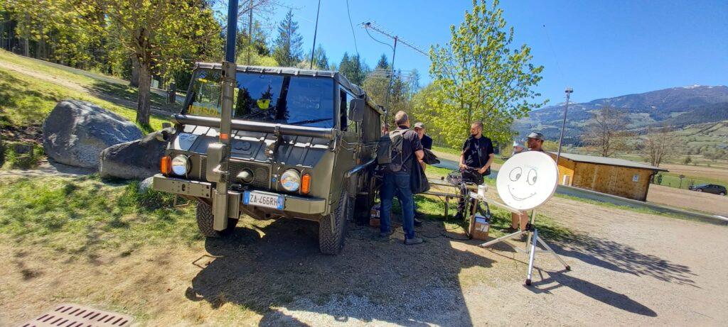 Wir waren insgesamt 12 Funkamateure: Thomas IW3AMQ führte am Vormittag durch den theoretischen Teil, Stefan IW3BSO zeigte am Nachmittag die digitale Betriebsart VARA, Peppi IN3ZWF zeigte mit dem mobilen Satellitenspiegel für QO-100 die Betriebsarten CW und SSB, Reinhold IN3SQL war mit seinem Pinzgauer 4×4 vor Ort und spannte für KW die Windomantenne für die Betriebsart SSB und zwei Richtantennen für VHF und UHF.