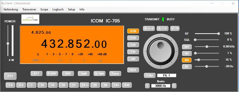 Es ist sogar möglich, im Spektrum auf den interessierten Träger zu klicken und die RX-QRG passt sich sofort auf diesen Träger an. Weiters kann das Spektrum durch Ziehen des Fensterrandes vergrößert werden.