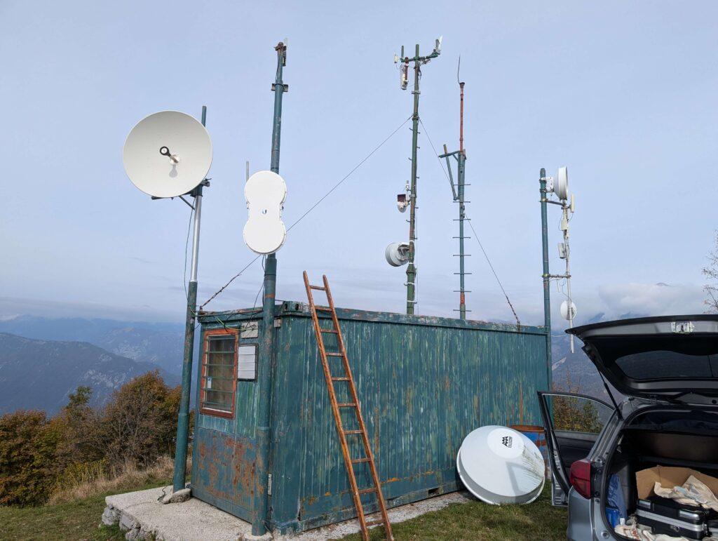 Wie geplant wurden alle Antennen installiert. Jene Antenne, die zur Marmolada schaute (Mikrotik Dynadish), wurde zum Monte Cesen gedreht.
