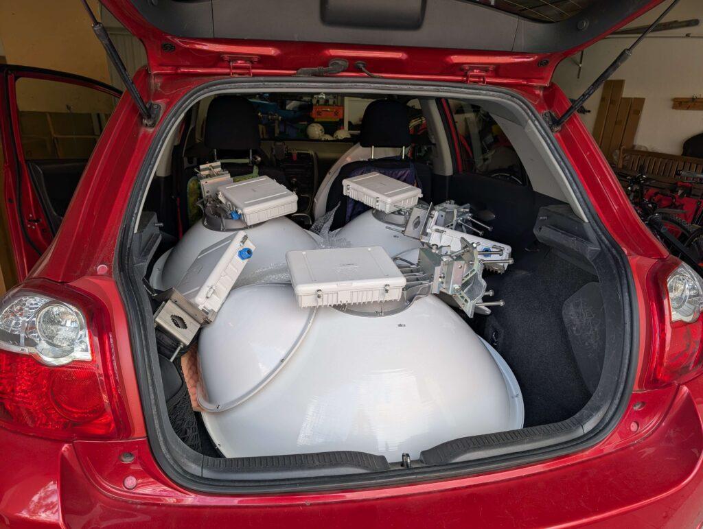 Und … gegen 12:30 kam der freudige Anruf vom Jann: “Thomas, wir sehen euer Signal mit -70 dBm!” Wir hatten unseren Spiegel nur über den Daumen gepeilt eingestellt!