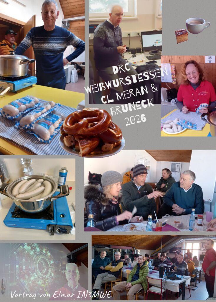 Im Clublokal Meran trafen sich am Sonntag, 04.01.26 gegen 9.30 Uhr 10 Funker zu einem gemütlichen Miteinander. Elmar machte einen spannenden Vortrag über den CERN. Er schilderte uns einige imposante Zahlen über die Anlage und erklärte viele technische Details. Der Vortrag wurde von uns allen mit viel Neugierde verfolgt. Anschließend gab‘s die Weißwurst mit frischen Brezeln und verschiedene Getränke. Gerald IN3PGD und Sepp IN3USF gaben wiederum ihr Bestes und hatten alles gut organisiert. Vielen Dank! Natürlich wurde wieder viel gefachsimpelt. Gegen Mittag löste sich die kleine Gruppe langsam auf.
