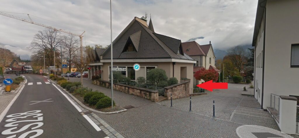 Tscherms, Trojenweg 1, Pfarrsaal Tscherms (befindet sich im Untergeschoß auf der Hinterseite der Raiffeisenkasse)