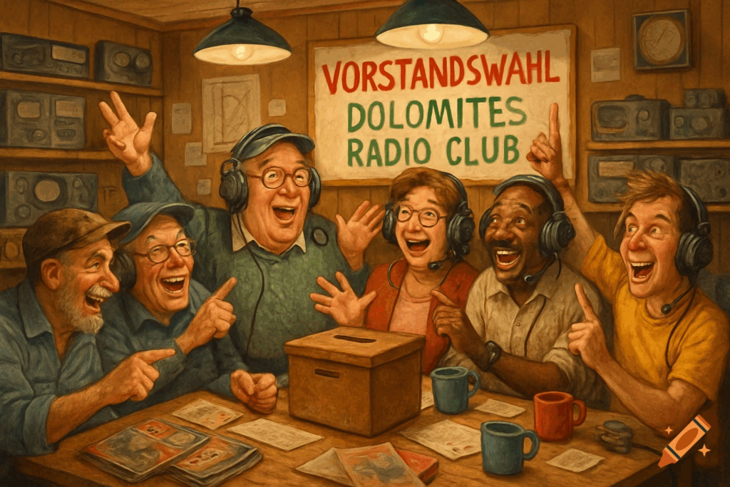 73 vom Vorstand: Thomas IW3AMQ, Gerald IN3PGD, Sepp IN3USF, Rita IN3IJZ, Alexius IW3AIB
