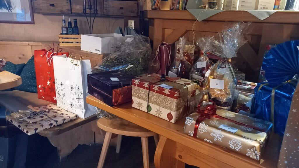 Natürlich fehlte auch heuer die Tombola nicht. Viele hatten mehrere Päckchen mitgebracht. Jede und jeder konnten somit zwei Lose ziehen – fast wie Weihnachten! Für die 17 Frauen in unserer Runde (bravo – unsere Frauenquote vom letzten Jahr hat sich gehalten!) wartete schließlich eine besondere Überraschung: rote und weiße Weihnachtssterne, verschiedene Zyklamen, Amaryllis und einige Christrosen, mitgebracht von Helmuth IN3GZL – ein herzliches Dankeschön! Es haben sich wieder alle sehr darüber gefreut!