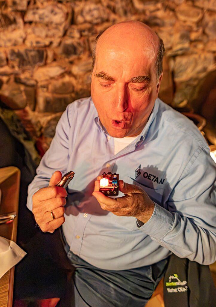 Das Lokal war wieder nett gerichtet und bot viele gemütliche Nischen. Vor allem die Vor- und Nachspeisen luden zum Genießen ein. Es herrschte eine weihnachtliche, gemütliche Stimmung. Einige hatten auch interessante technische Geräte mit dabei, z.B. die elektronische Kerze von Manfred OE7AAI (Bauanleitung auf Discord!). So gab es für alle vielfältige Gespräche. Die Zeit verflog im Nu.