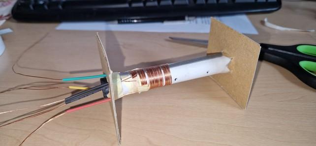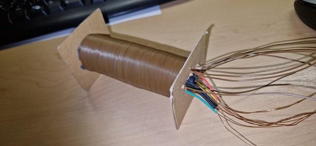 Den Spulenkörper habe ich aus Pappe und Pergamentpapier (Dank an die Küchenfee) zusammengeklebt. Die untere Lage ist die Auskoppelwicklung.