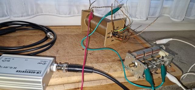 Es muss also eine andere Lösung her. Nachdem keines meiner Empfangsgeräte diesen Frequenzbereich empfangen kann, habe ich mir den LW-Empfangskonverter-Bausatz vom Funkamateur Online-Shop kommen lassen. Zwischen 10 kHz und 100 kHz sind etliche Signale sauber zu hören. Obwohl nur für den Bereich zwischen 10 kHz und 500 kHz gedacht, ist aber auch der Empfang bis zum 160 m-Band möglich. Als Antenne habe ich eine Entmagnetisierungsspule aus einem ausgedienten Farbfernsehgerät verwendet (Dank an DO9JBL).
